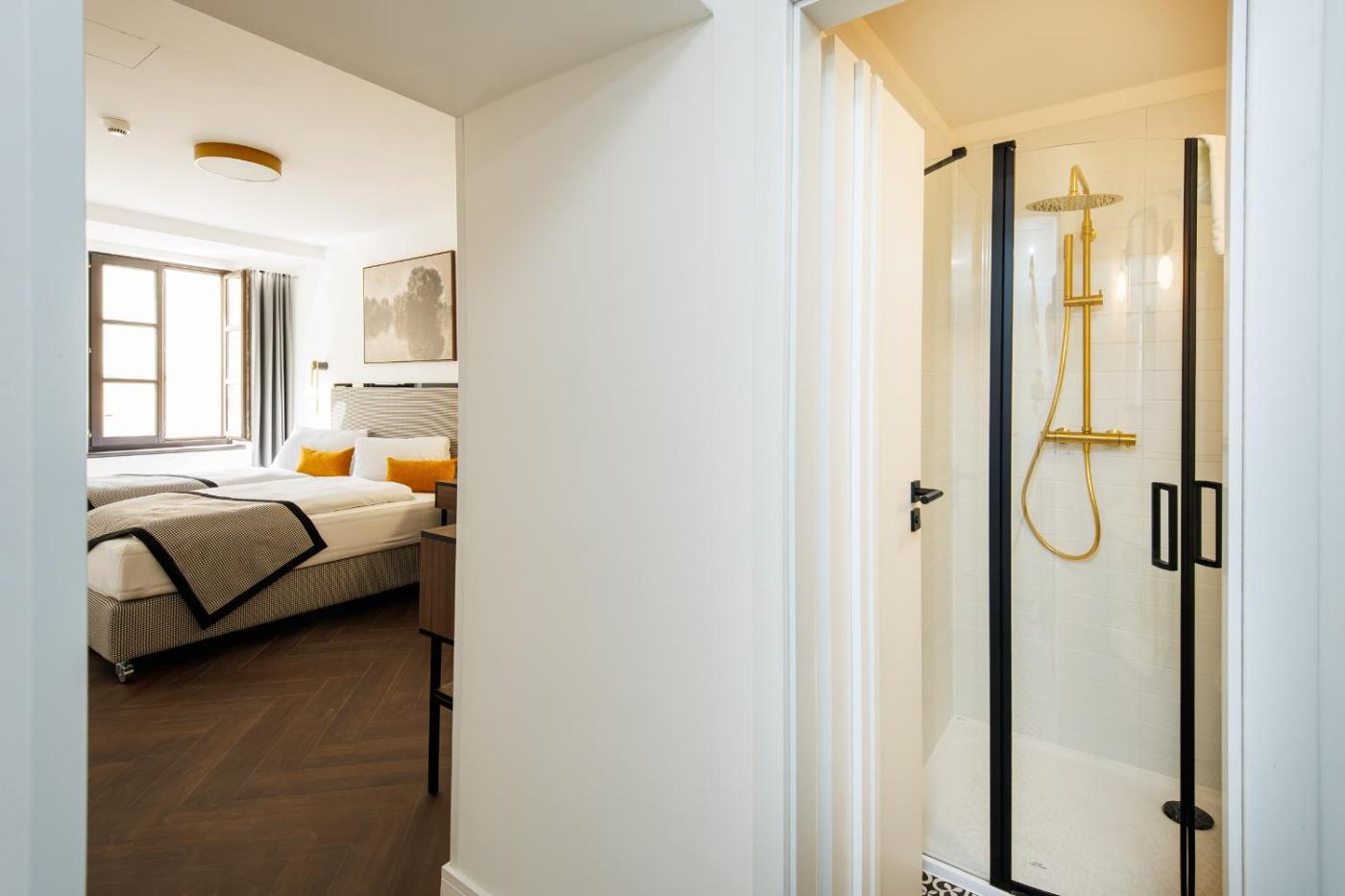 Deluxe Double Room with Shower. Featuring free toiletries, this double room includes a private bathroom with a shower and a hairdryer. The air-conditioned double room features a flat-screen TV with streaming services, soundproof walls, a tea and coffee maker and a safe deposit box. ;